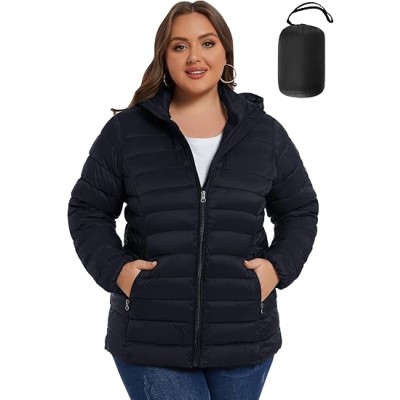 ANOTHER CHOICE Plus Size Packable Puffer Coat for Women, Light Weight Winter Jacket with Hood